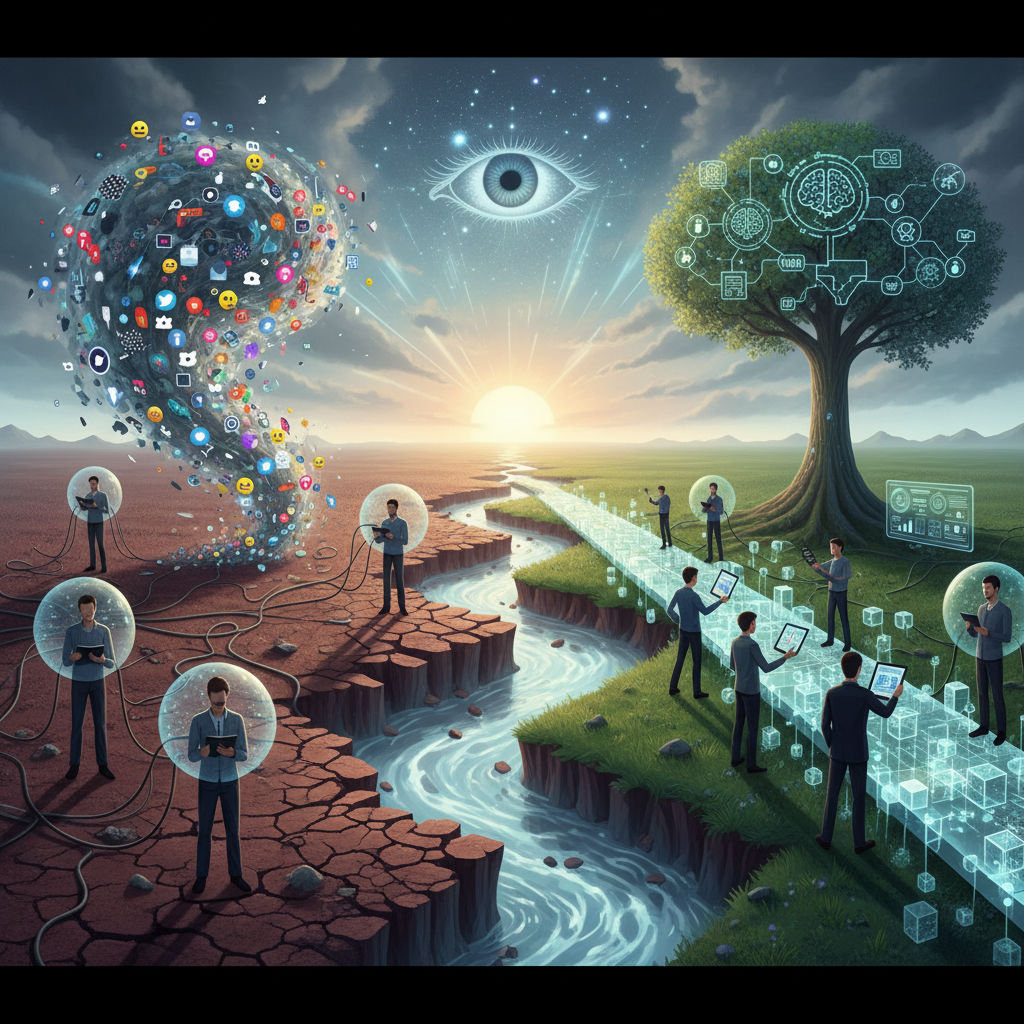 - Sociedade Fragmentada: Grupos se formam e se solidificam em torno de narrativas auto-confirmadas, perdendo a capacidade de dialogar com quem pensa diferente. A empatia diminui à medida que o “outro” é rapidamente rotulado e descartado com base em suposições.